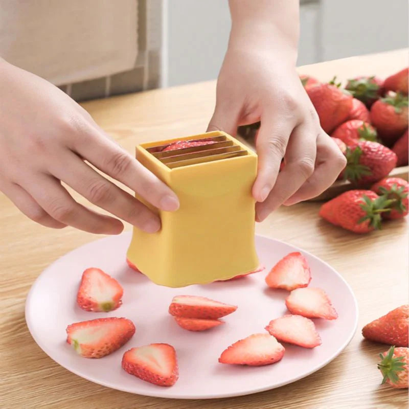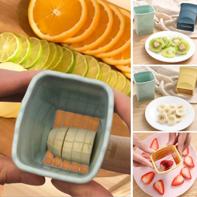 Nie je potrebné krájať nožom a nehrozí vám porezanie prstov. Stačí jemne stlačiť krájač a ovocie sa dá nakrájať na kocky alebo plátky. Rez je úhľadný a rovnomerný, čo je krajšie ako krájanie nožom.