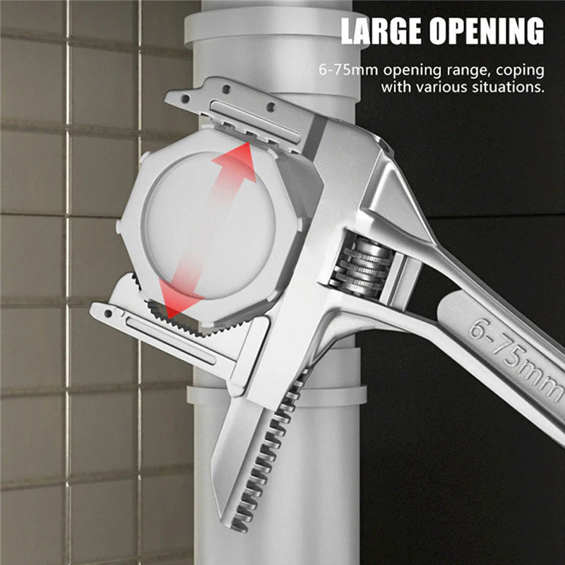 Tento skrutkovací kľúč je perfektný pre sanitárne priestory, umývadlá, trubkové skrutky atď. Nastaviteľné veľké otvorenie, ktoré sa hodí pre všetky veľkosti trubiek.