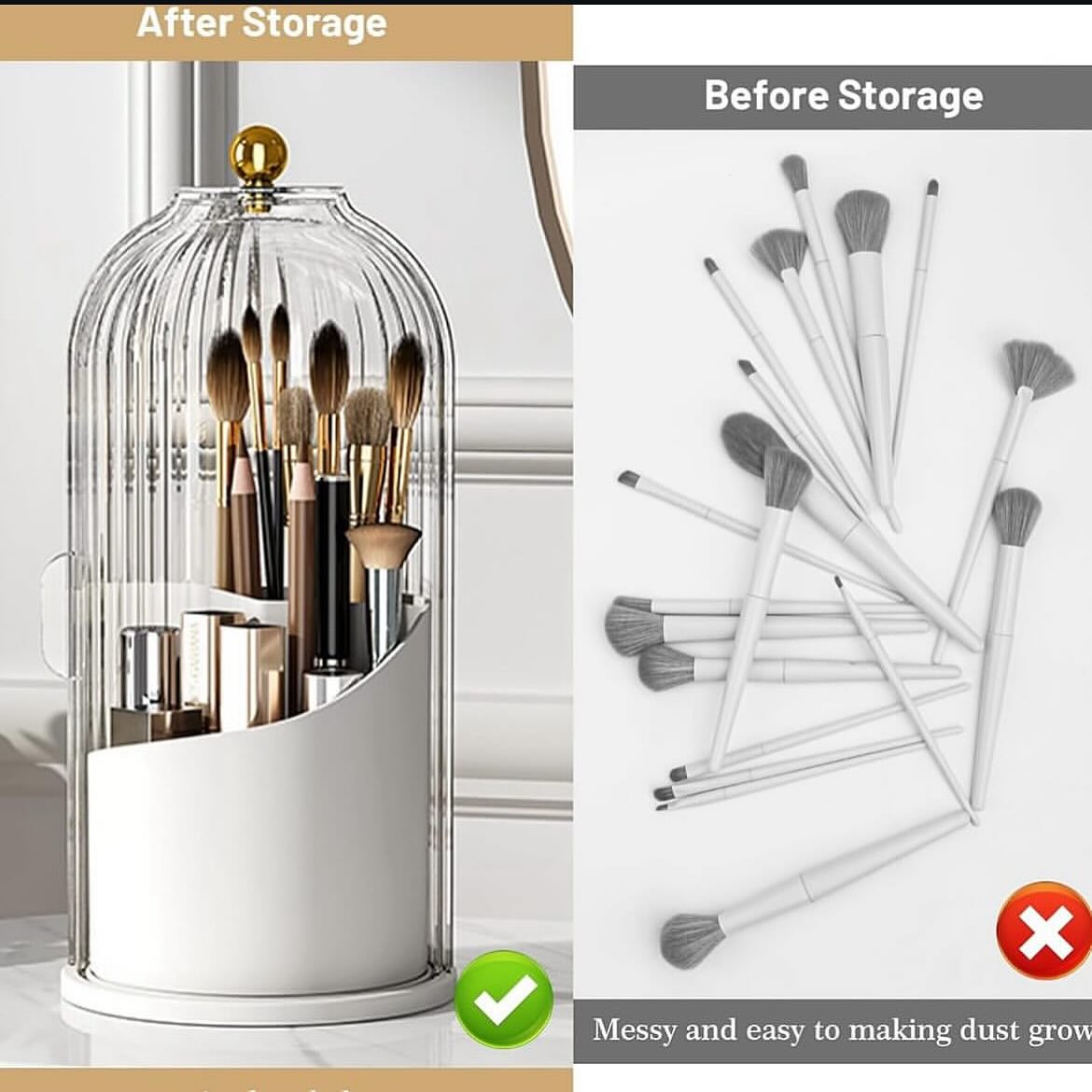 1 buc. organizator de machiaj transparent rotativ 360° elegant cu     - cutie de depozitare cosmetică rezistentă la   pentru pensule, rujuri și pudre compacte - decor perfect pentru toaletă în dormitor sau baie, suport pentru pensule de machiaj Detaliile articolului 0