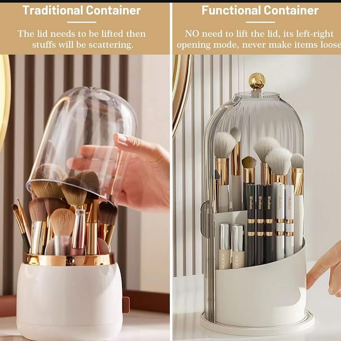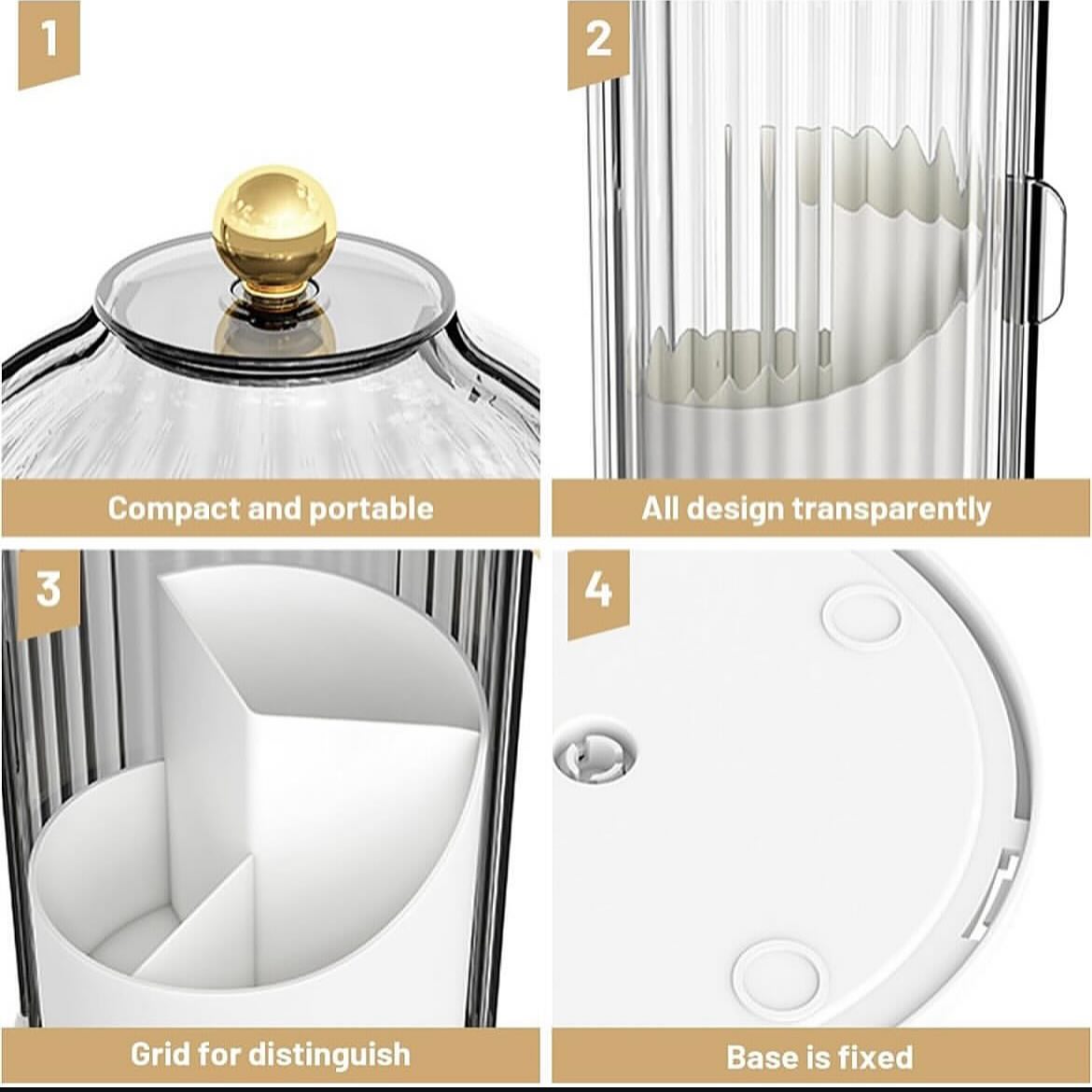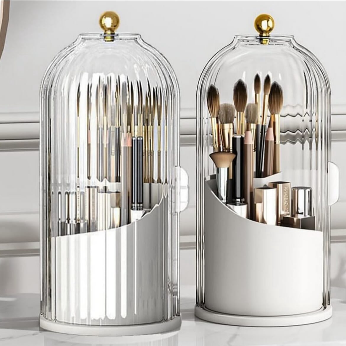 1 buc. organizator de machiaj transparent rotativ 360° elegant cu     - cutie de depozitare cosmetică rezistentă la   pentru pensule, rujuri și pudre compacte - decor perfect pentru toaletă în dormitor sau baie, suport pentru pensule de machiaj Detaliile articolului 1