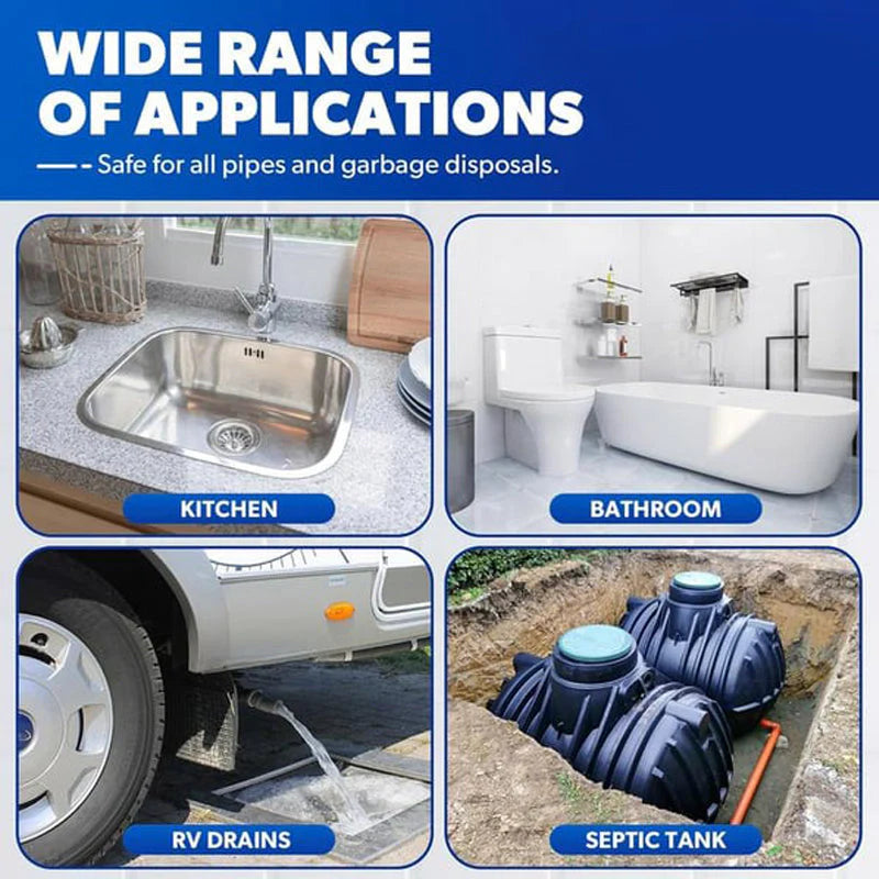 PRISPOSOBLIVÁ PRE RÔZNE POTRUBIA – Táto gél funguje bezpečne s PVC, plastom a inými bežnými domácimi potrubiami, poskytujúci spoľahlivé čistenie bez poškodenia materiálov. Perfektná pre kuchyne, koupelne, praní a domácosti, pretože dokáže spracovať každodenné zamačania spôsobené vlásokmi, tukom, zvyškami mýdla a jedlom.
