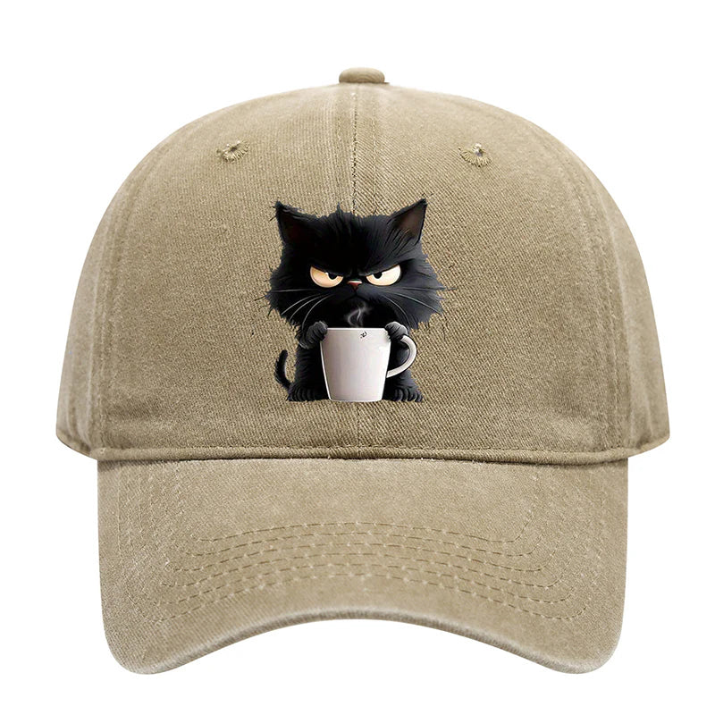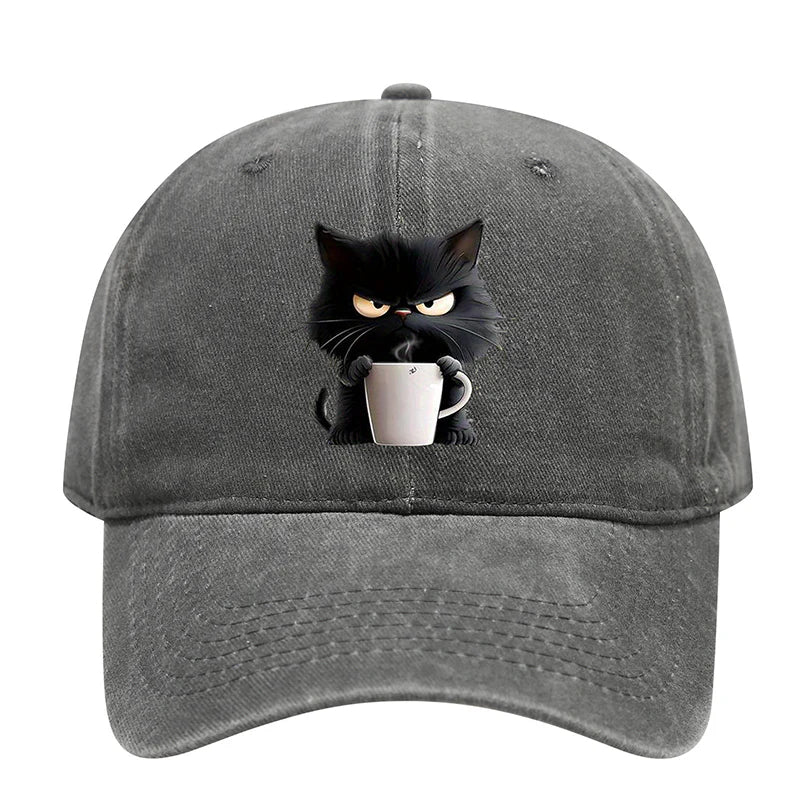 UNIKÁTNY VINTAGE DESIGN: Ukážte svoju zábavnú stranu touto priamej baseballovej kšiltovkou s odvážnym tlačidlom milého čierneho kocka, ktorý drží hrnček. Umelecká zmes retro pocitov a náznakom divokého kúzla robí túto kšiltovku výnimočným doplnkom pre každý každodenný outfit.