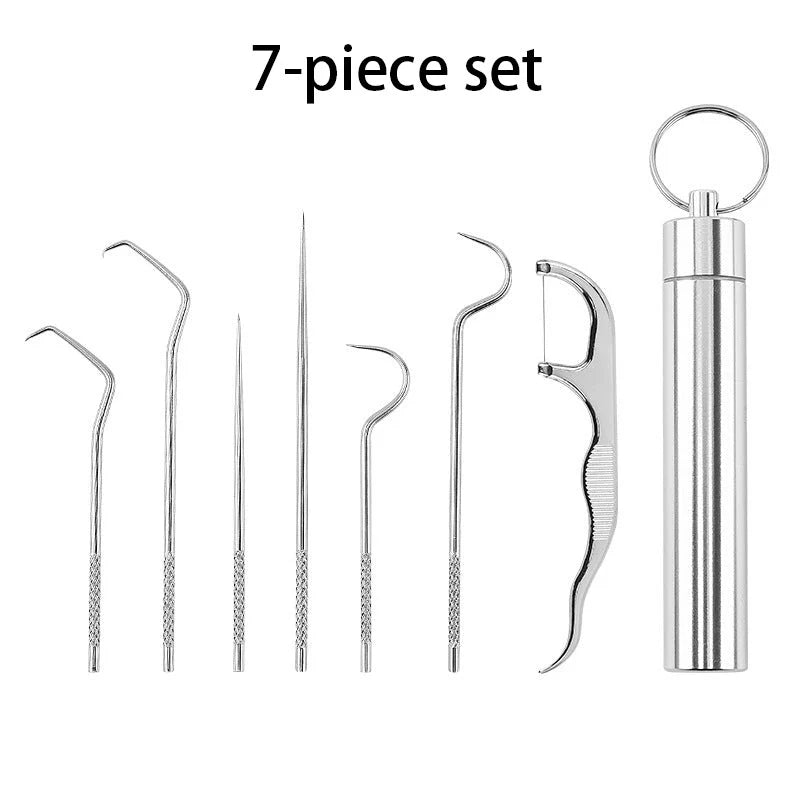 - Prenosné špáradlá z nerezovej ocele namiesto lacných a slabých zubných škrabiek. Je vyrobené z hladkého kovu z nerezovej ocele s maximálnou pevnosťou.