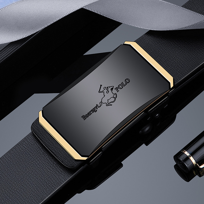 (Offerta a tempo limitato)Cintura da uomo in vera pelle di vacchetta fatta a mano con fibbia automatica,Cornice placcata argento.